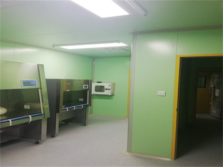 無菌潔凈室不宜設(shè)在底層,防潮、防霉、采光好,遠(yuǎn)離交通干道,廁所及污染區(qū),面積不超過10m2,高度不超過2.4m,由兩個緩沖間、操作間組成。操作間緩沖間之間應(yīng)有樣品傳遞窗,出入操作間和緩沖間的門不應(yīng)直對。無菌室內(nèi)應(yīng)六面光滑平整,無縫隙,不起灰,不落塵,耐腐蝕,易清洗,墻壁與地面、墻壁與天花板連接處應(yīng)呈凹弧形,操作間不得安裝下水道。